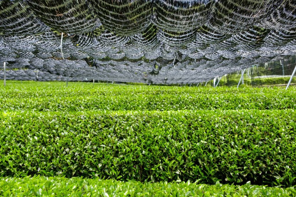 一方、玉露は収穫前の約20日間、わらや寒冷紗といった覆いを茶園にかぶせて日光を遮る「被覆栽培」という特別な方法で育てられます。