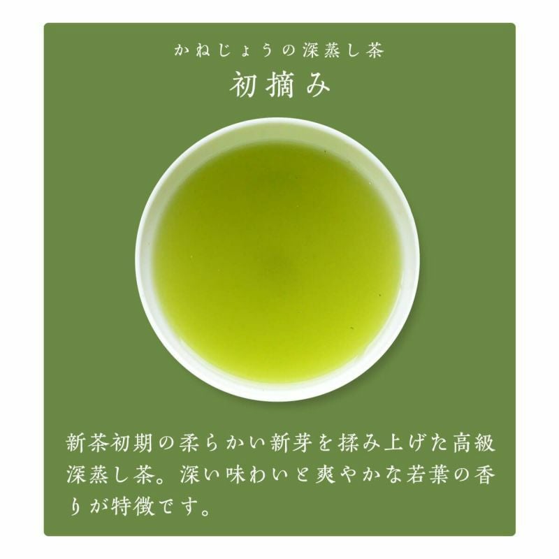 新茶初期の柔らかい新芽を揉み上げた高級深蒸し茶。深い味わいと爽やかな若葉の香りが特徴です。