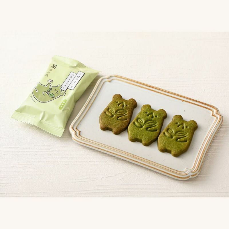 茶どころ掛川の愛らしい子ぐまの形をしたクッキー。プレーンの「バター」と、優しいお茶の香りと風味が楽しめる「抹茶」と「ほうじ茶」の3種類の味をお楽しみいただけます。それぞれ3枚ずつを個包装にし、かわいい箱に詰め合わせしました。自分用の他に手土産としてもおすすめです。バターたっぷりのサクサクのクッキーは、紅茶とも緑茶とも相性ぴったり。楽しいお茶の時間をお過ごしください。