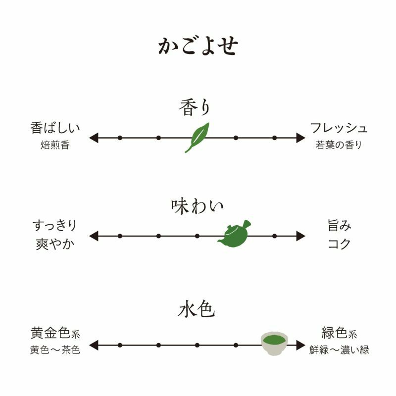 深蒸し茶は蒸す時間が長いことによってお湯に溶け出る茶の成分が多いため、茶碗に注いだ時の液色も濃い緑色となります。濃い緑色ではありますが、旨味成分が多いため渋みは少なく、まろやかでコクのある喉越しが特徴です。