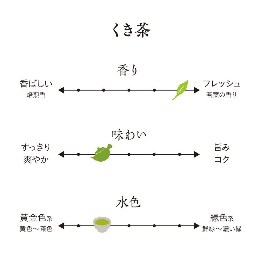 深蒸し茶は蒸す時間が長いことによってお湯に溶け出る茶の成分が多いため、茶碗に注いだ時の液色も濃い緑色となります。濃い緑色ではありますが、旨味成分が多いため渋みは少なく、まろやかでコクのある喉越しが特徴です。
