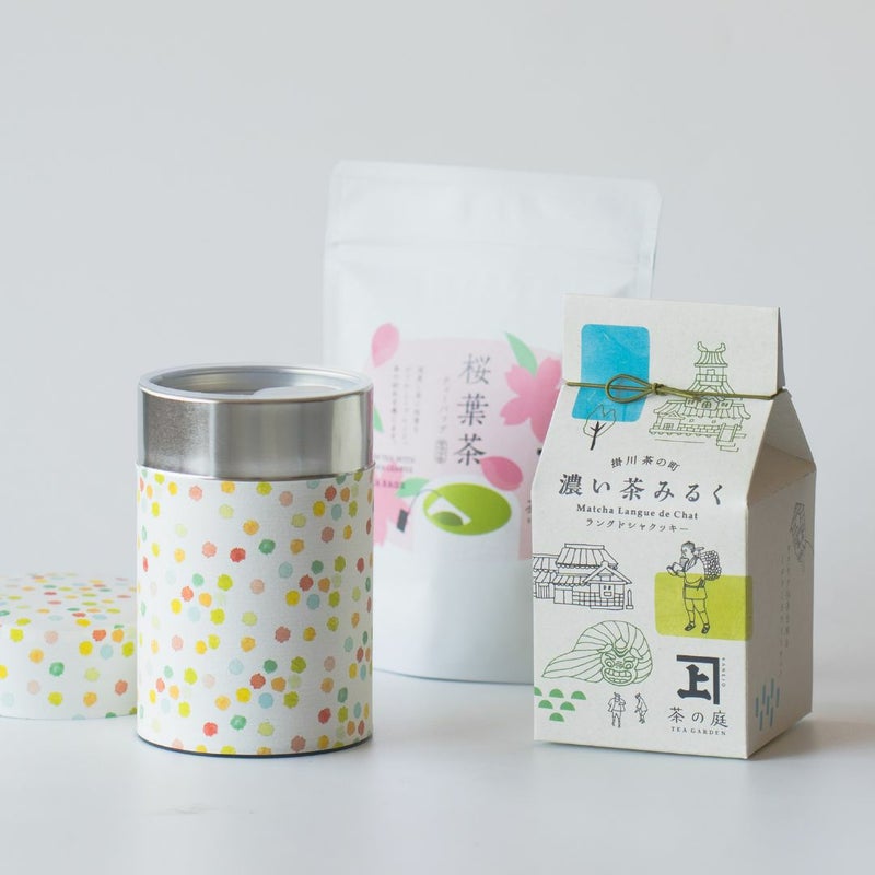 春の訪れを感じさせてくれる桜葉香る煎茶ティーバッグとラングドシャのギフトセットに、可愛らしいドット柄のお茶缶が付いたギフトBOXです。春のひとときにお菓子とお茶でリラックスできるひと時をプレゼントしてみてはいかがでしょうか。