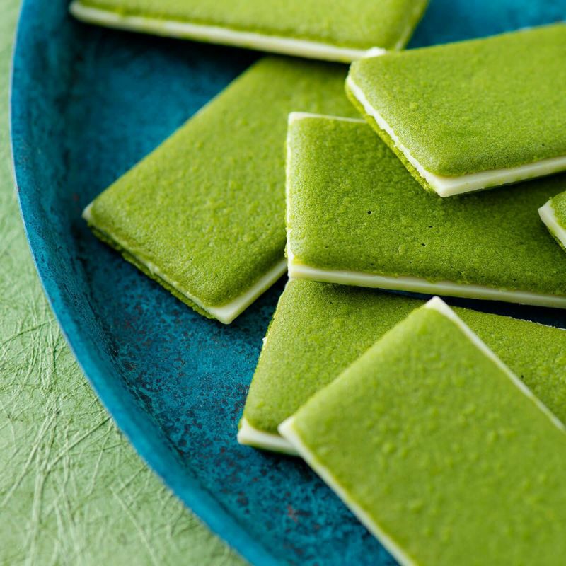 原材料 チョコレート(砂糖、ココアバター、全粉乳、乳糖、植物油脂)、小麦粉、砂糖、バター、卵白、植物油脂、抹茶、食塩、煎茶、乳化剤、香料、(原材料の一部に大豆を含む)