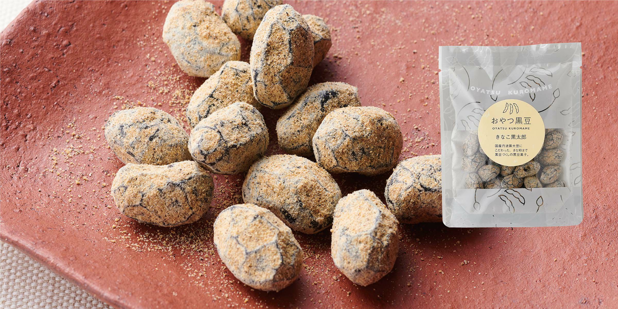 うす甘納豆「丹波の黒太郎」を丹波黒大豆きな粉で包んだ、黒豆づくしの黒豆菓子です。 黒豆の豊かな味わいとやさしい甘さをお楽しみいただけます。